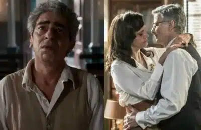 “Sei que disse que queria falar do casamento, mas a verdade é que estava louco pra te ver! (…) Eu sei que podemos ser flagrados, Violeta, me desculpa, mas não aguento ficar longe de você. Você não me sai da cabeça. É a minha única alegria! Agora me dá um beijinho, que eu já estou roxo de saudade!”, declarará o ricaço, dando um beijo apaixonado na amada, sem perceber que o personagem de Claudio Jaborandy estava ali presenciando toda a cena.