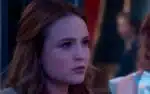 Rapidamente, ela lembrará das falas ditas pelo mágico: “Joaquim já sabe de tudo. Só não colocou a boca no trombone porque eu tenho provas de que ele está roubando a fábrica com a ajuda da Úrsula”. Durante o fim do flashback, a personagem de Larissa Manoela aparecerá avistando o cartaz, nervosa, enquanto escutará a voz de Elisa: “Acorda, Dorinha. Acorda!” em Além da Ilusão.