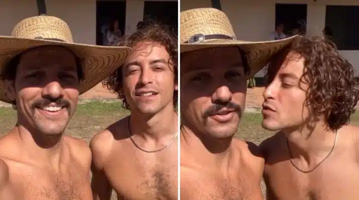 Em um vídeo publicado nas redes sociais, Guito fala para a câmera, enquanto o amigo surge ao lado e lhe dá dois beijos no rosto. “Nós [estamos] aqui, na fazenda do seu José Leôncio [Marcos Palmeira]. Hoje é dia de confissões, compadre”. O ator também legendou a publicação dizendo: “Vitamina D”.