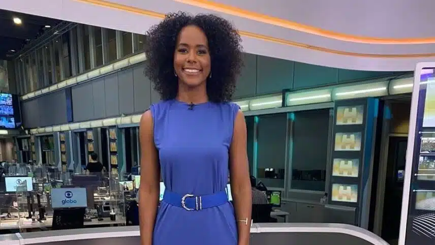 Logo depois, Maju Coutinho olhou uma mensagem em seu celular e virou para trás para ver a equipe do jornalismo da Globo aplaudi-la. Sorrindo e agradecendo, ela fez um sinal de coração com as mãos.