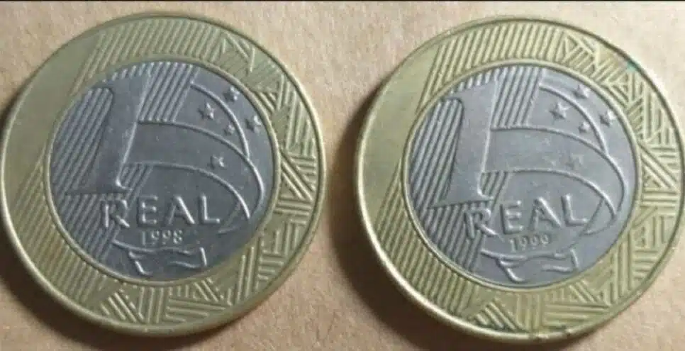 Moeda de R$ 1 com um P – 1998: Uma falha na cunhagem fez com que algumas moedas tivessem um “P” impresso na parte inferior. Esta particularidade indica que a moeda foi uma amostra, servindo de referência para outras produções. Dependendo de sua condição e demanda, pode valer até R$ 10.000.